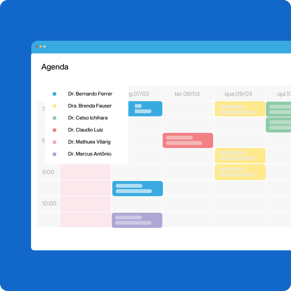 Organize atendimentos por especialidade, profissional ou convênio.